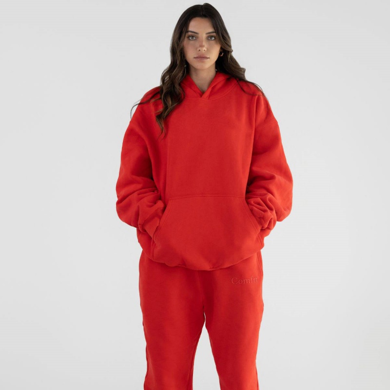 Unisex Red Hoodie Set Winter Oversized Hoodie Custom Women's Hoodie Set