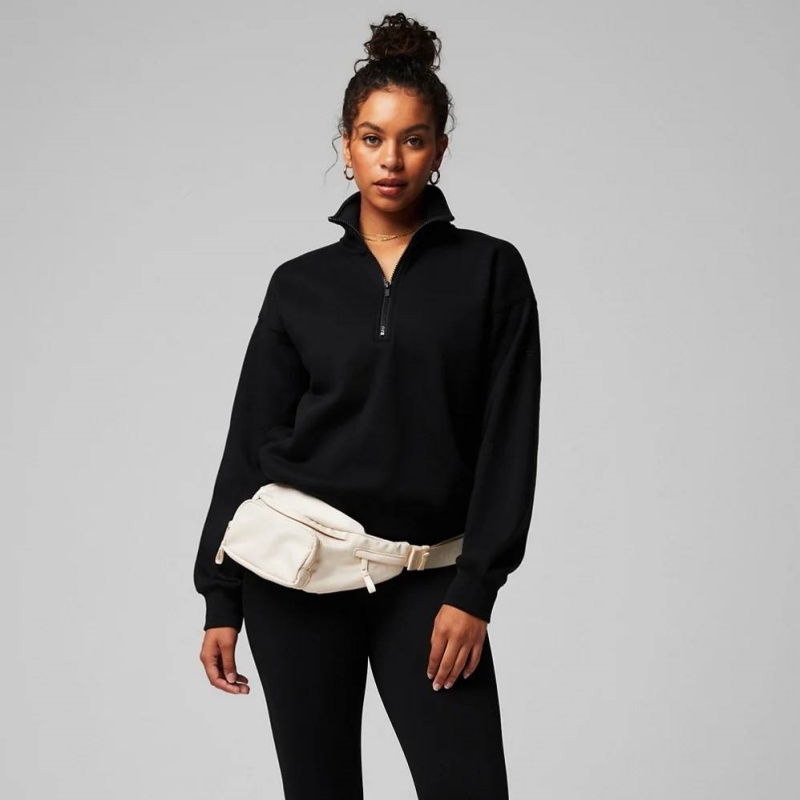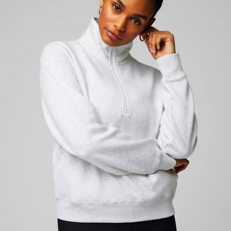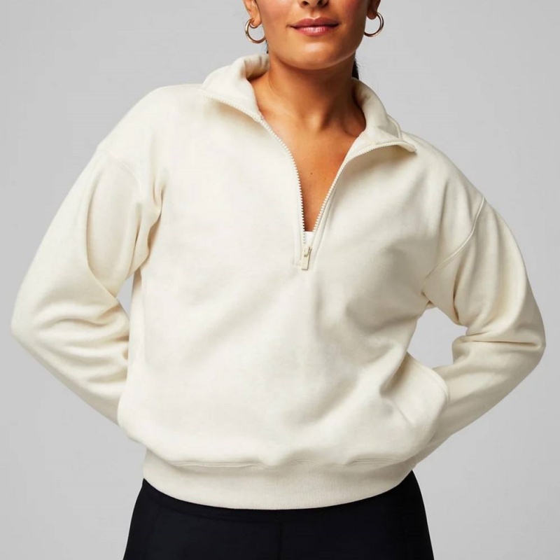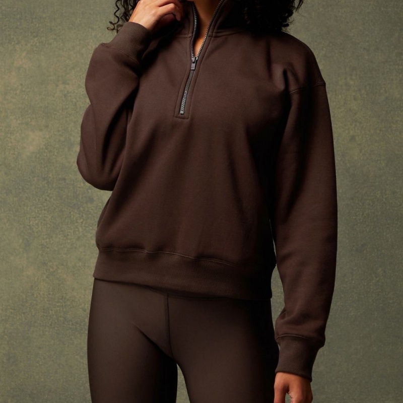 Quarter-Zip Hoodie Cotton Embroidered Half Placket Sweatshirt Women's Hoodie